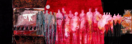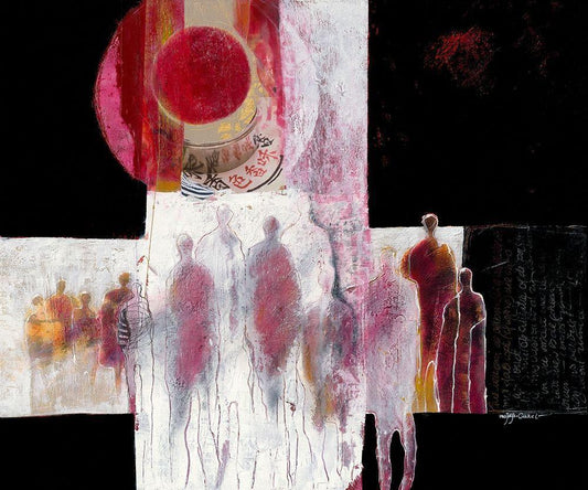 Mensen op weg White Modern Wood Framed Art Print with Double Matting by van Ginkel, Marjolijn