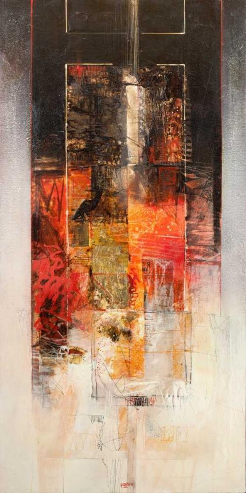 Sinfonia in rosso White Modern Wood Framed Art Print with Double Matting by Censini