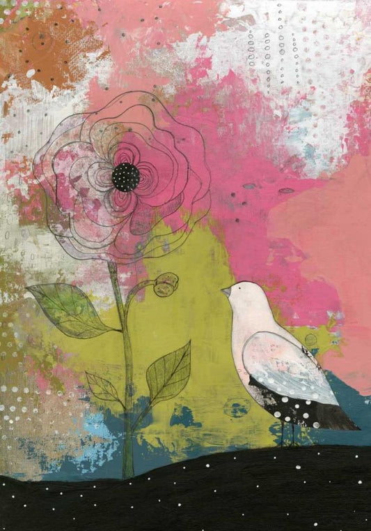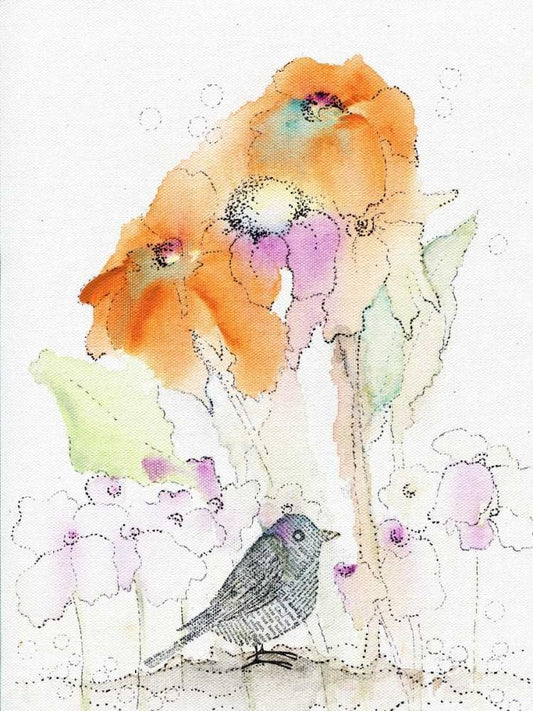 Bird and Orange Flowers White Modern Wood Framed Art Print with Double Matting by Ogren, Sarah