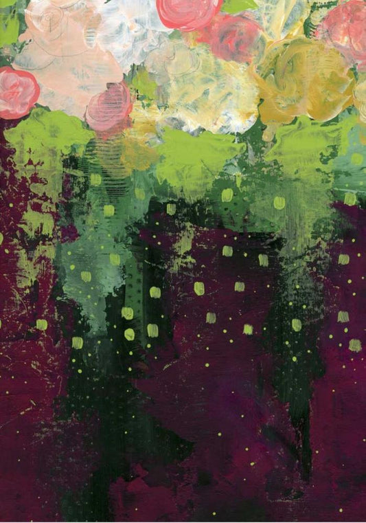 Purple and Lime Floral White Modern Wood Framed Art Print with Double Matting by Ogren, Sarah