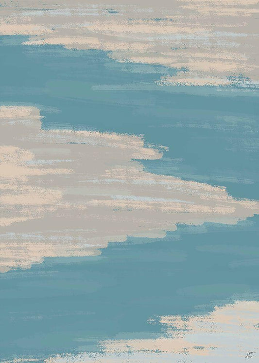 Tan-Peach-Teal White Modern Wood Framed Art Print with Double Matting by Lee, Judson