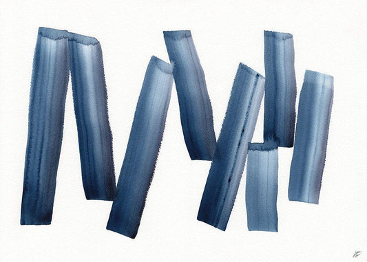 Mod Lines on Blue II White Modern Wood Framed Art Print with Double Matting by Lee, Judson