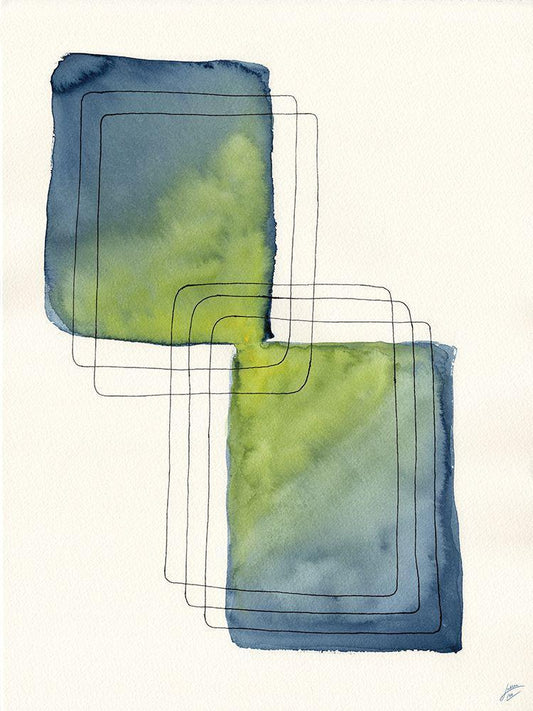 Blue Green I White Modern Wood Framed Art Print with Double Matting by Lee, Judson