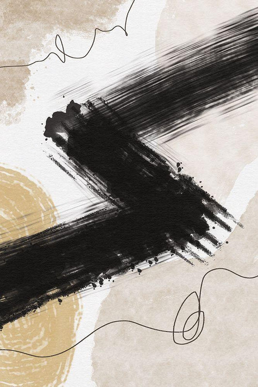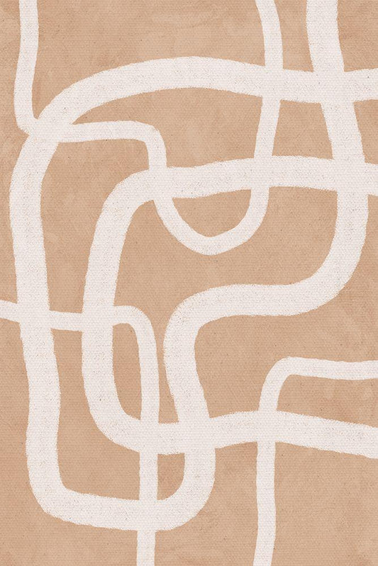 Beige Lines White Modern Wood Framed Art Print with Double Matting by JJ Design House