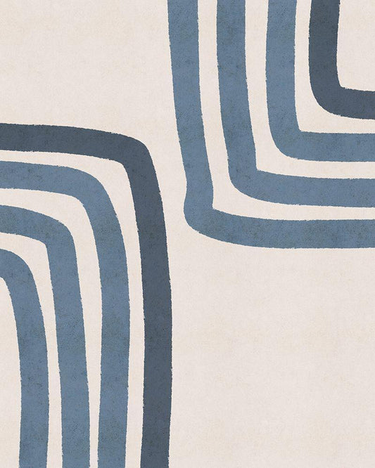 Blue Lines II White Modern Wood Framed Art Print with Double Matting by JJ Design House