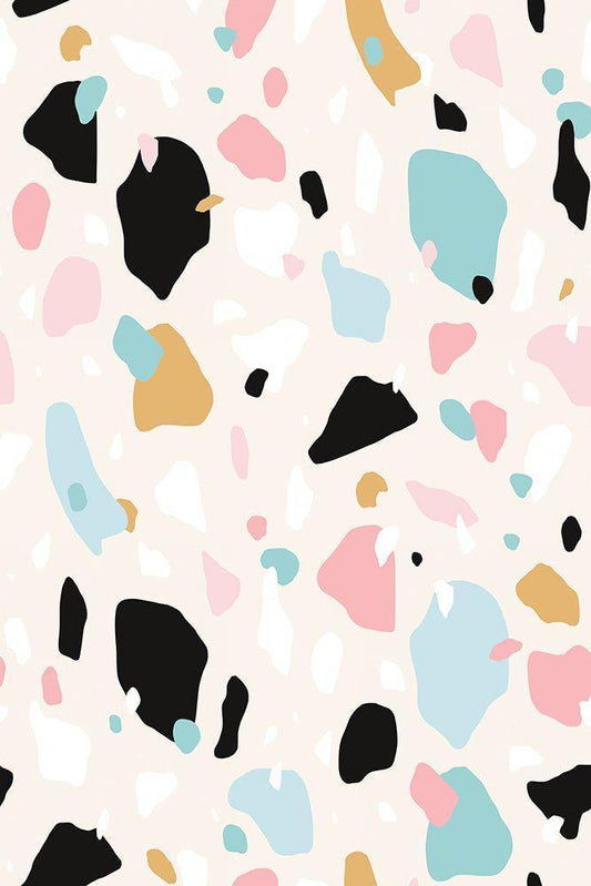Terrazzo White Modern Wood Framed Art Print with Double Matting by JJ Design