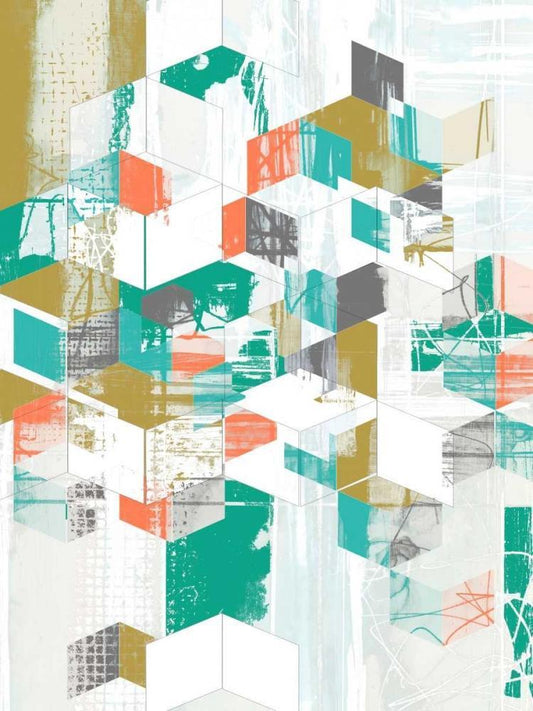 Box Grid I White Modern Wood Framed Art Print with Double Matting by Goldberger, Jennifer