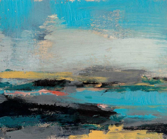Teal Sunset I White Modern Wood Framed Art Print with Double Matting by Goldberger, Jennifer