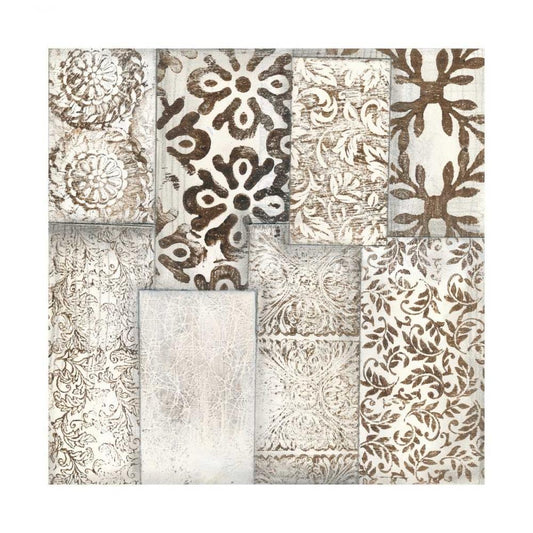 Neutral Patterned Patchwork I White Modern Wood Framed Art Print with Double Matting by Goldberger, Jennifer