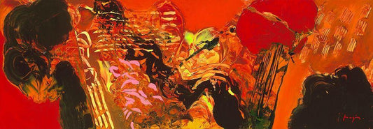 Jazz II White Modern Wood Framed Art Print with Double Matting by Ball, Veronique
