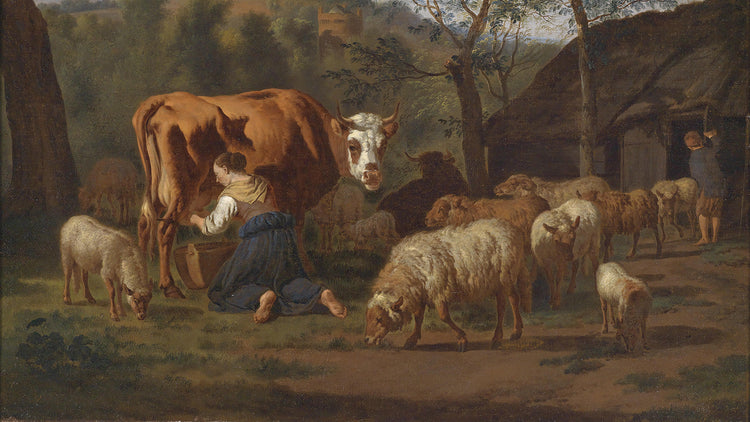 Seated Woman With A Basket And Livestock 20x24 Black Modern Wood Framed Art Print Poster by Velde, Adriaen van deRegular price $74.99 USDRegular priceUnit price per-