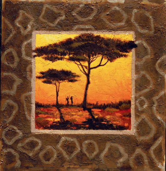 Savannah Sunset I White Modern Wood Framed Art Print with Double Matting by Madou