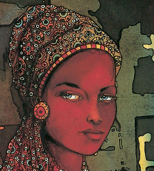African Head Dress White Modern Wood Framed Art Print with Double Matting by Unknown