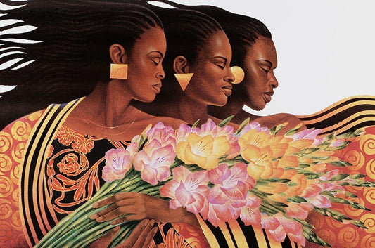 Three Beauties White Modern Wood Framed Art Print with Double Matting by Unknown