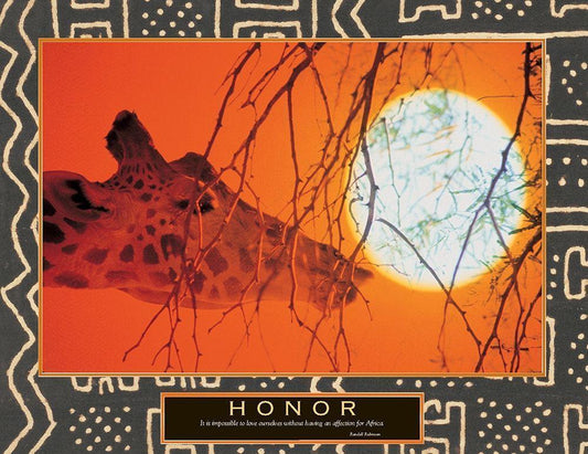 Honor - Giraffe and Sun White Modern Wood Framed Art Print with Double Matting by Unknown