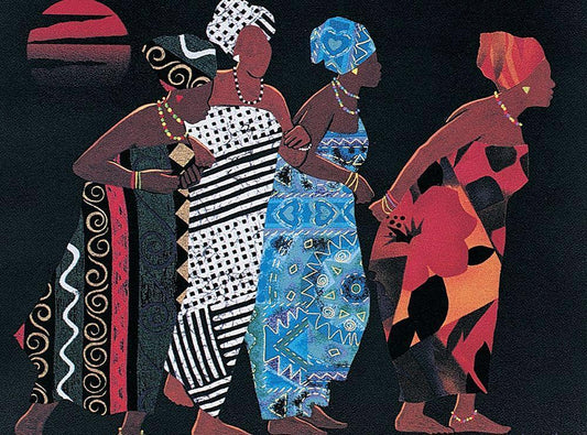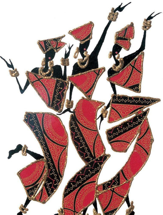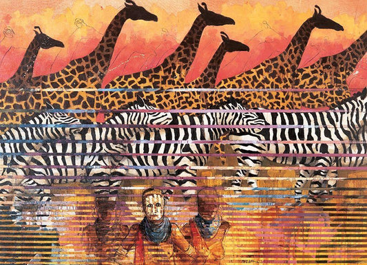 Tribal Walk White Modern Wood Framed Art Print with Double Matting by Unknown