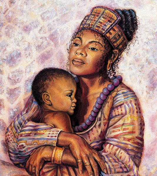 Nubian Lady and Child White Modern Wood Framed Art Print with Double Matting by Unknown