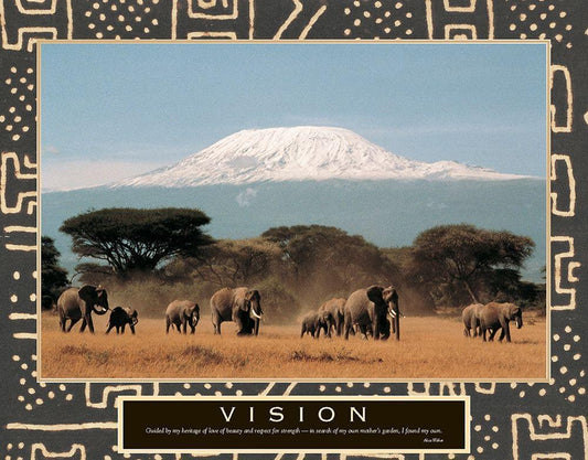 Vision - Elephant Herd White Modern Wood Framed Art Print with Double Matting by Unknown