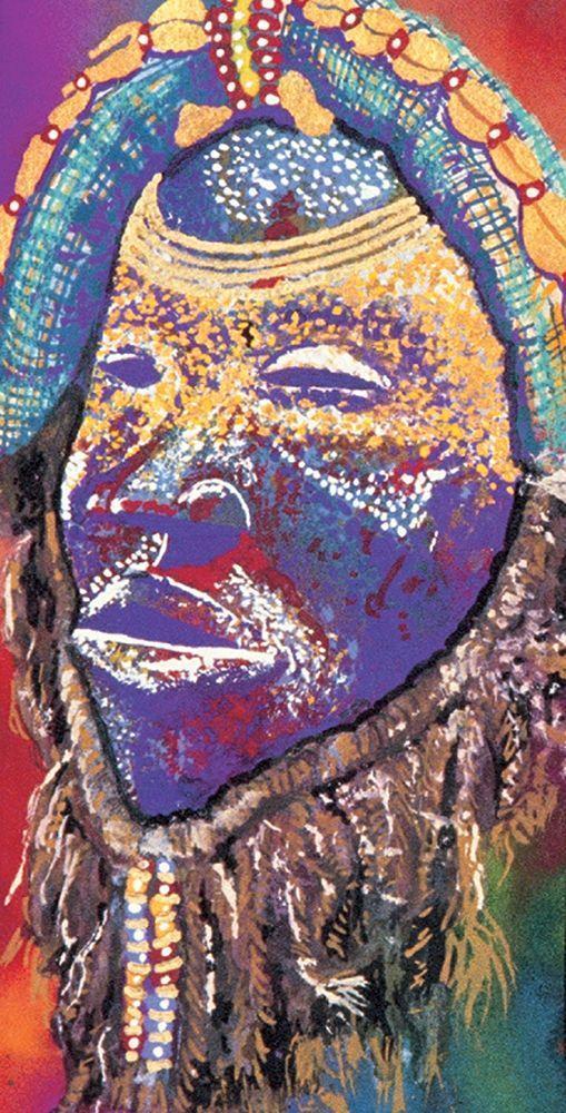 Tribal Masque II White Modern Wood Framed Art Print with Double Matting by Unknown