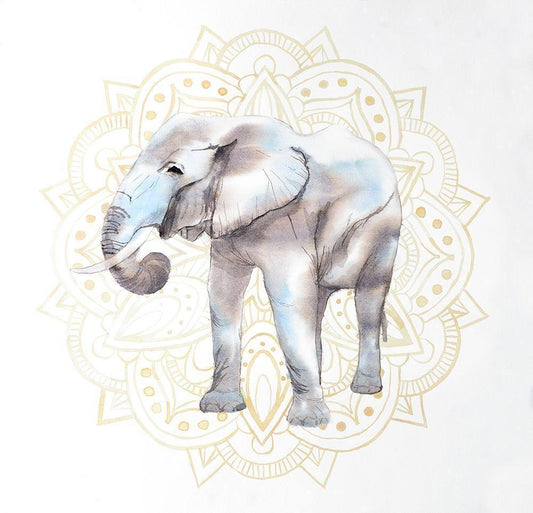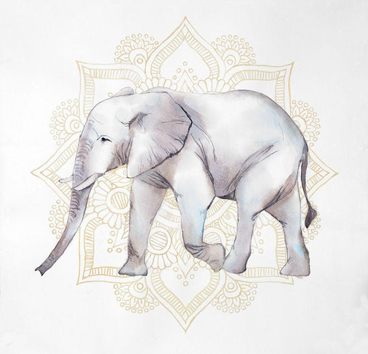 ELEPHANT ON MANDALAS White Modern Wood Framed Art Print with Double Matting by Atelier B Art Studio