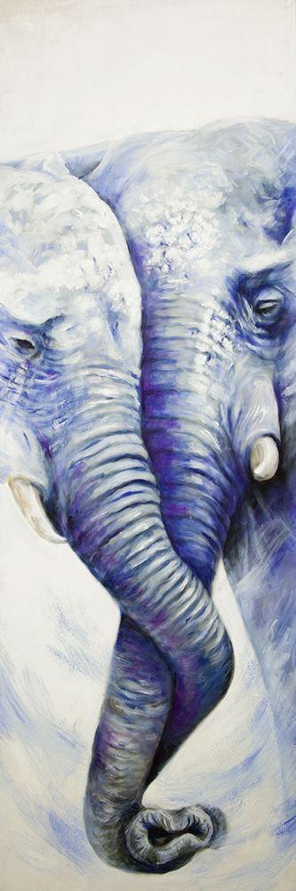 ELEPHANT COUPLE LOVING EACH OTHER White Modern Wood Framed Art Print with Double Matting by Atelier B Art Studio
