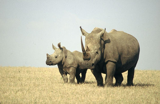 Rhino family White Modern Wood Framed Art Print with Double Matting by Hoenderkamp, Patrick