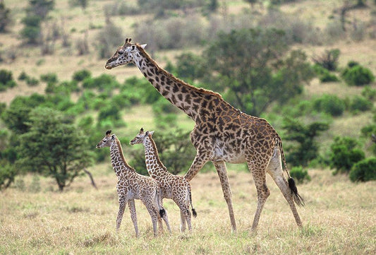 Giraffe family White Modern Wood Framed Art Print with Double Matting by Hoenderkamp, Patrick