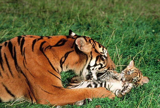 Mother tiger White Modern Wood Framed Art Print with Double Matting by Hoenderkamp, Patrick