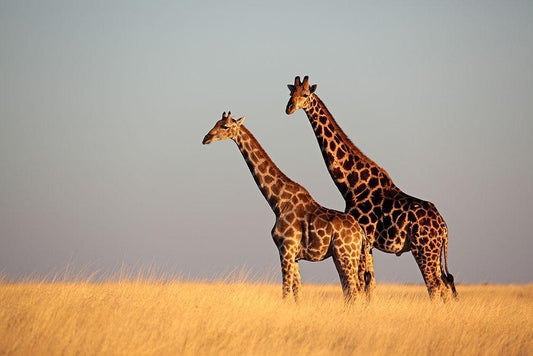 Giraffes, African Skies White Modern Wood Framed Art Print with Double Matting by Anonymous