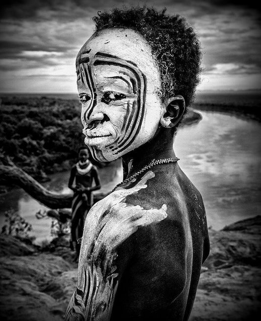 A Boy Of The Karo Tribe. Omo Valley (Ethiopia). White Modern Wood Framed Art Print with Double Matting by Inazio Kuesta, Joxe