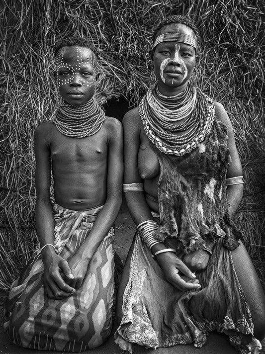 Two Karo Tribe Girls (Omo Valley-Ethiopia) White Modern Wood Framed Art Print with Double Matting by Inazio Kuesta, Joxe