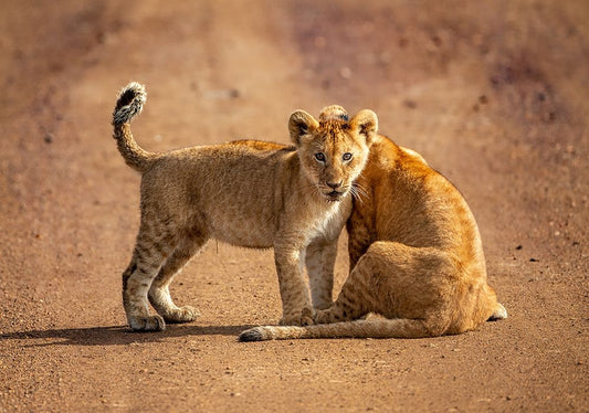 Dwarf Mongooses White Modern Wood Framed Art Print with Double Matting by Catta, Alessandro