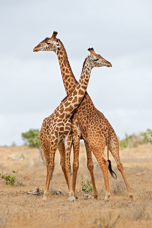 Giraffe At Sunset White Modern Wood Framed Art Print with Double Matting by Ortega, Xavier