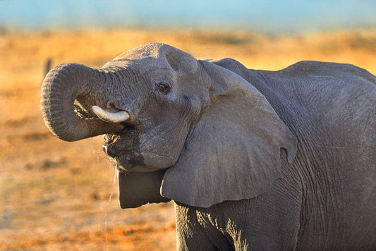 African elephant drinking-Zimbabwe Sepia White Modern Wood Framed Art Print with Double Matting by Fitzharris, Tim