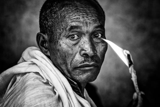 Ethiopian Man Holding A Lit Candle In A Religious Ceremony. White Modern Wood Framed Art Print with Double Matting by Inazio Kuesta, Joxe