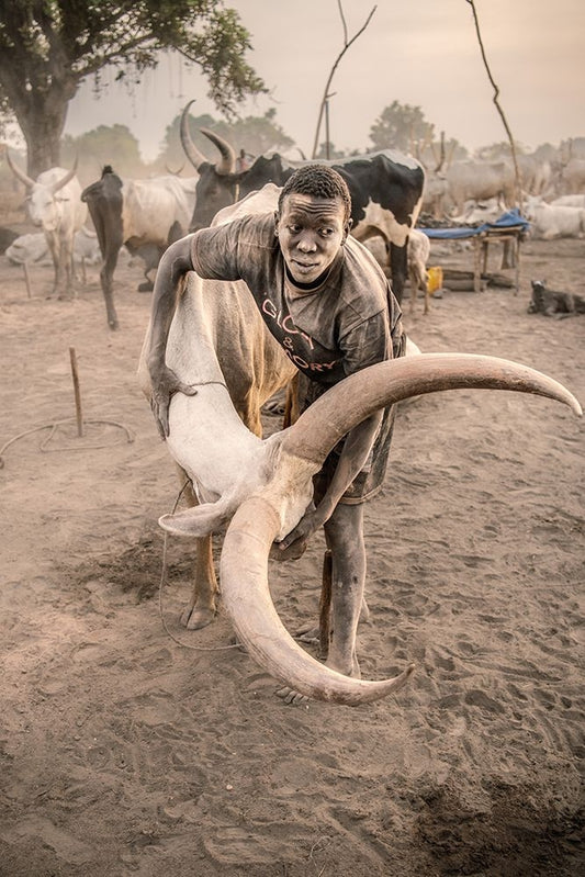 A Scene Of Life In A Mundari Cattle Camp - South Sudan White Modern Wood Framed Art Print with Double Matting by Inazio Kuesta, Joxe