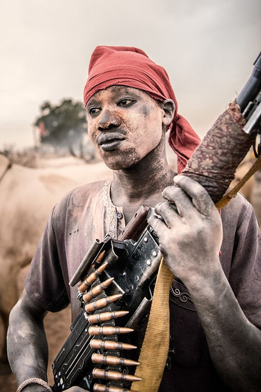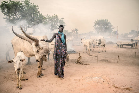 Mundari Woman Herder White Modern Wood Framed Art Print with Double Matting by Cole, Trevor