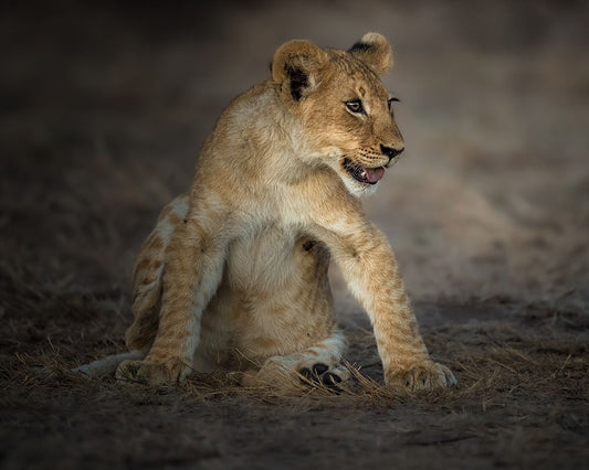 Lion cub on the prowl White Modern Wood Framed Art Print with Double Matting by Ortega, Xavier