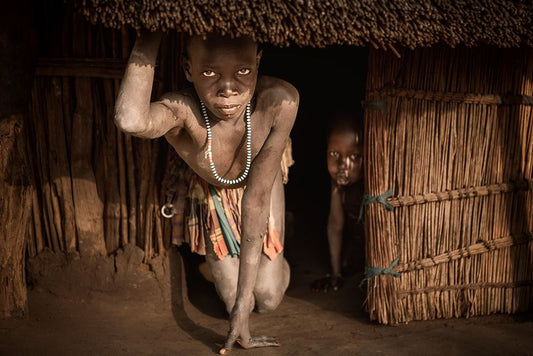 Surmi Tribe Woman - Ethiopia White Modern Wood Framed Art Print with Double Matting by Inazio Kuesta, Joxe