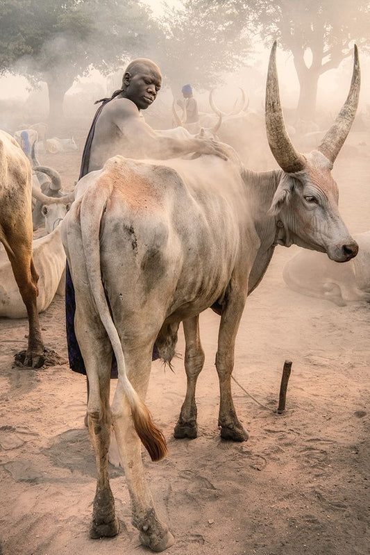 Peul Man - Niger White Modern Wood Framed Art Print with Double Matting by Inazio Kuesta, Joxe