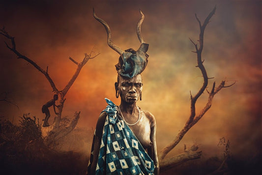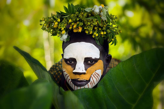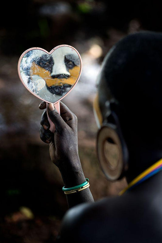Woman Mursi Coloring White Modern Wood Framed Art Print with Double Matting by Yosifov, Svetlin
