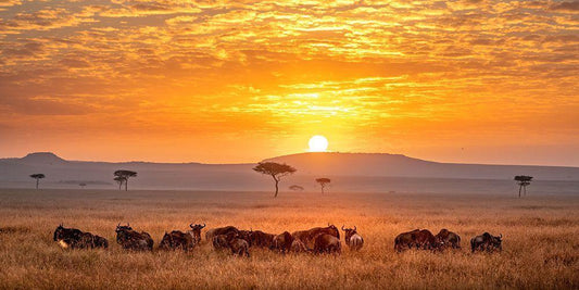Cheetah With Cubs At Dawn White Modern Wood Framed Art Print with Double Matting by Mohanraj, Arun