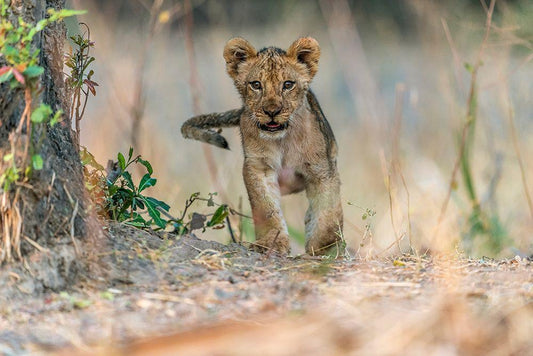 Cub - South Luangwa White Modern Wood Framed Art Print with Double Matting by Damico, Giuseppe