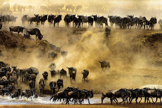 Golden Africa White Modern Wood Framed Art Print with Double Matting by J. Chen, John
