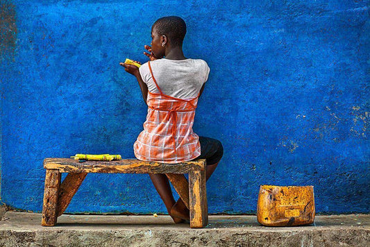 Eating Sugar Cane White Modern Wood Framed Art Print with Double Matting by Pandolfini, Sergio