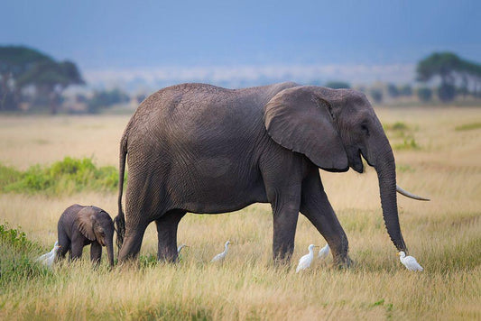 The Family Of Elephants White Modern Wood Framed Art Print with Double Matting by Chang, Phillip