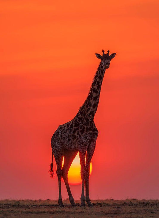 Sunset Giraffe White Modern Wood Framed Art Print with Double Matting by Zhao, Henry