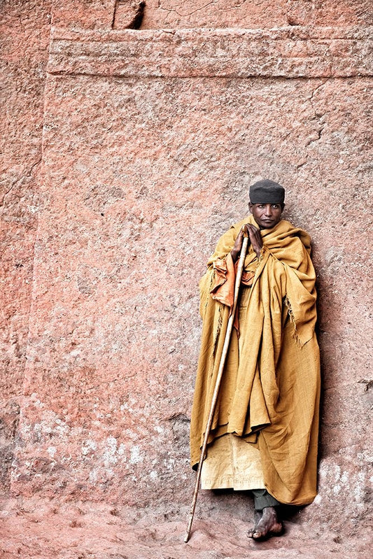 Lalibela Monk White Modern Wood Framed Art Print with Double Matting by Cole, Trevor