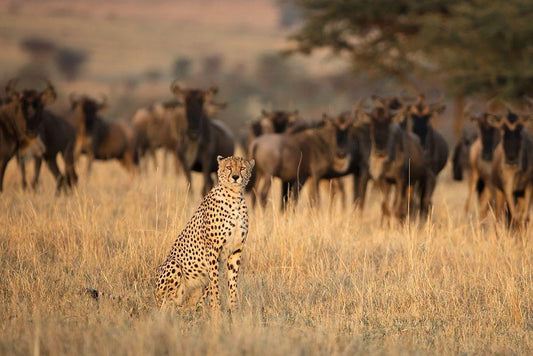 Wildebeests Walking In Golden Light White Modern Wood Framed Art Print with Double Matting by Hua, David