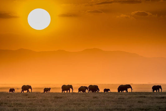 Sunrise Over Amboseli White Modern Wood Framed Art Print with Double Matting by C. Sink, Jeffrey